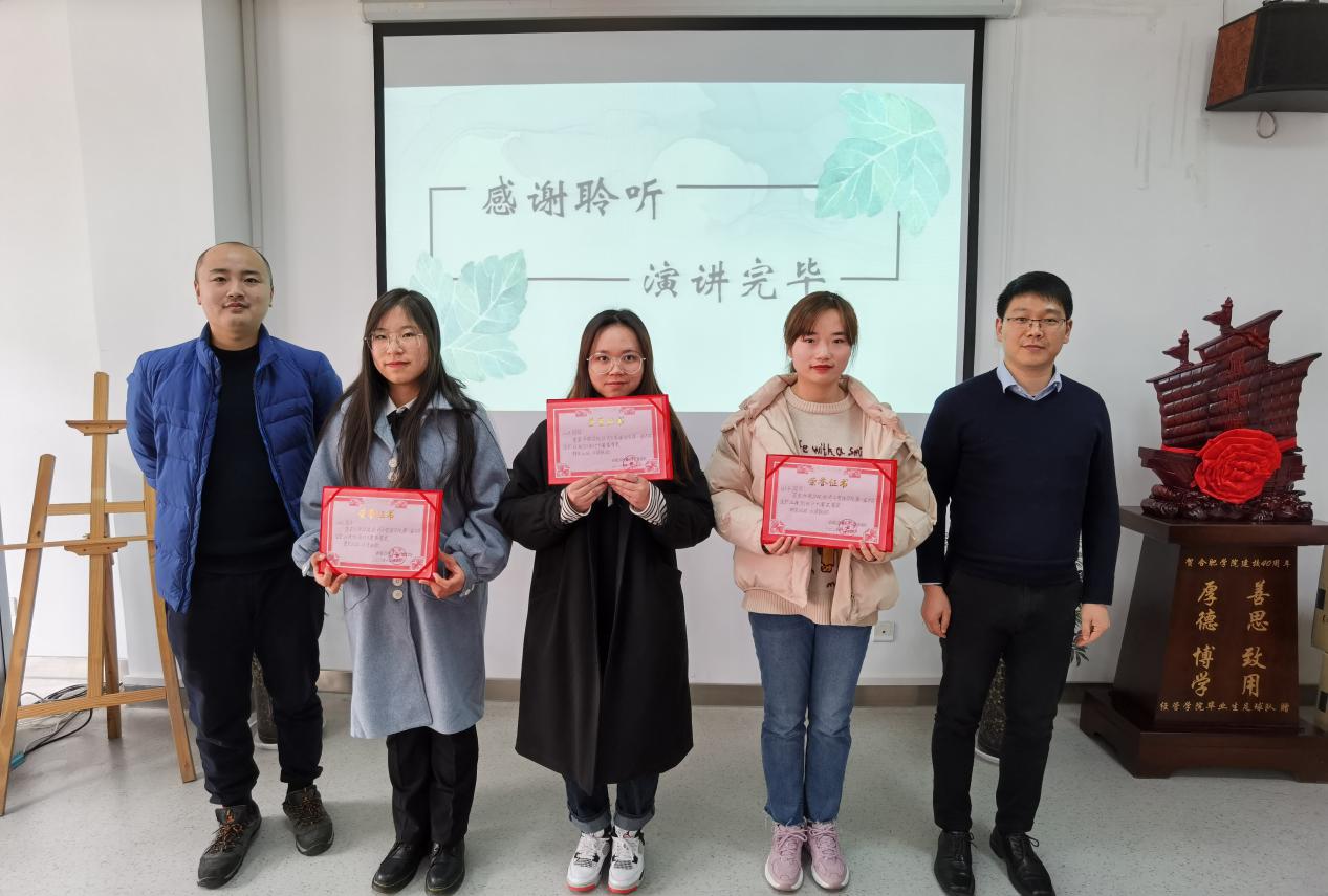 在楊書記向大家介紹了宋總后,王老師給參賽選手詳細(xì)介紹了比賽規(guī)則。隨后每位選手依次結(jié)合PPT演示文稿,對自我認(rèn)識和外部環(huán)境進(jìn)行了全面的分析,提出了自己的職業(yè)目標(biāo)、發(fā)展路徑和行動規(guī)劃,并從可操作性和現(xiàn)實意義等方面進(jìn)行了細(xì)致闡述。最后,宋總對參賽選手的表現(xiàn)做出點評,他認(rèn)為同學(xué)們自我評估全面、職業(yè)探索深入、職業(yè)目標(biāo)清晰和行動計劃詳盡;同時也指出內(nèi)容常規(guī)單薄不夠新穎、語言邏輯不夠嚴(yán)謹(jǐn)、PPT制作單調(diào)和重點亮點未突出等不足,希望同學(xué)們繼續(xù)努力,完善不足之處。比賽結(jié)束后,宋總為獲獎選手頒發(fā)證書并合影留念。