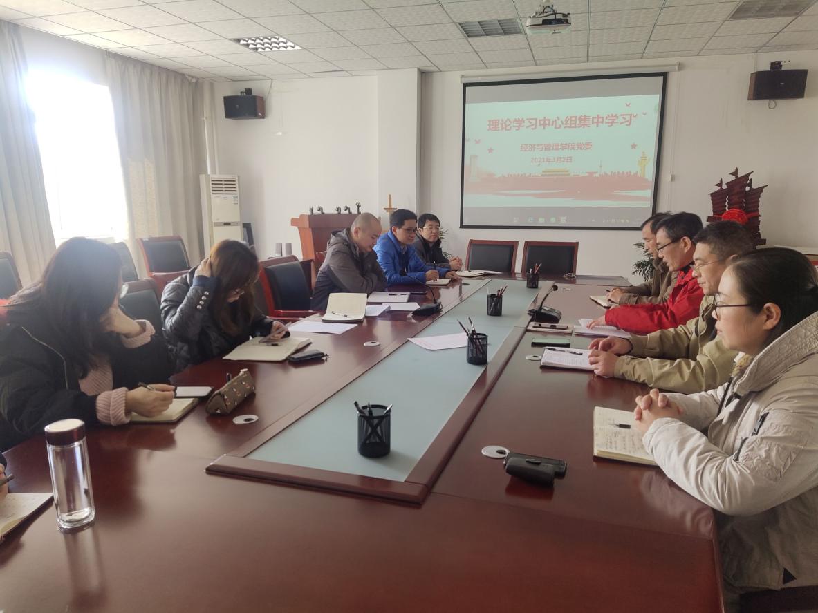 2021年3月2日,經濟與管理學院黨委召開黨委擴大會議,進行理論學習中心組集中學習并布置近期重要黨建工作任務。