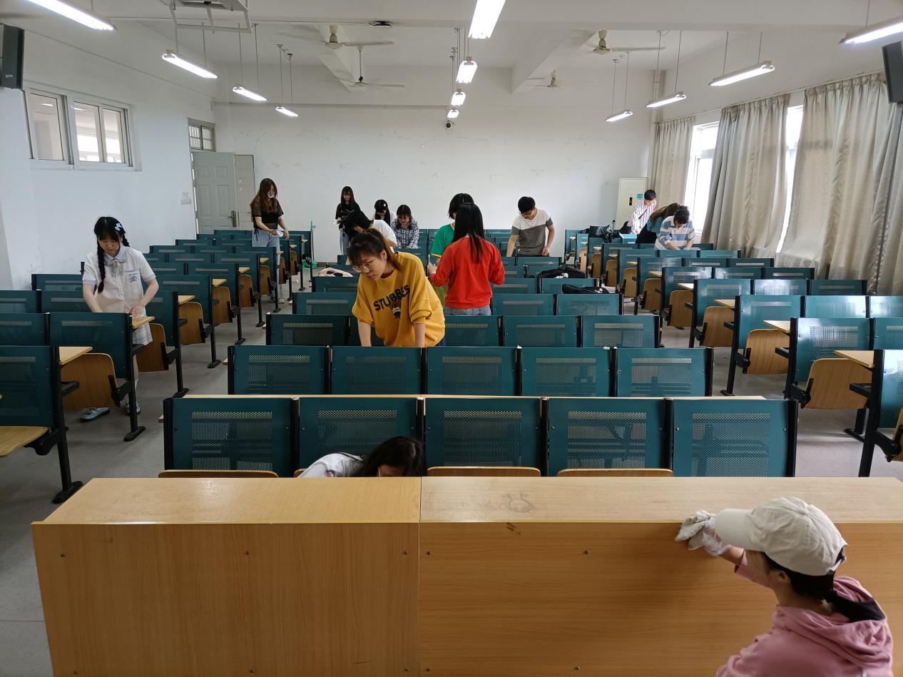 根據統一安排,經管學院第四期入黨積極分子帶上清潔工具到達指定區域,對一期4棟、6棟的走廊、樓梯、講臺、黑板、窗臺、桌椅、地面以及戶外周邊路面進行清掃。各支部配伍了安全員和協調員,在保障安全的前提下,明確分工,高效有序。