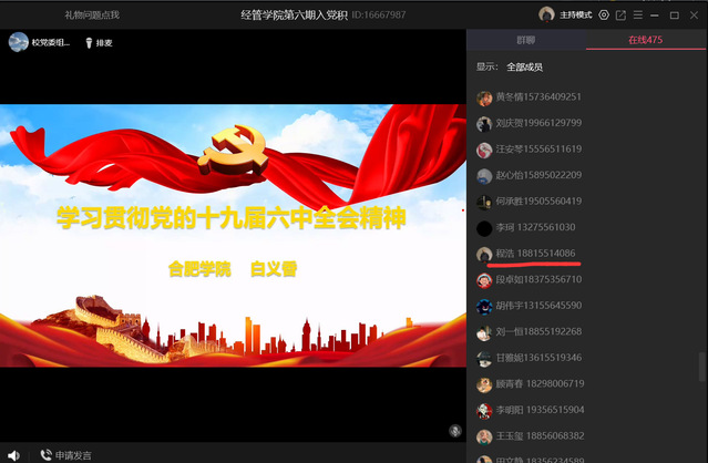 經濟與管理學院第六期入黨積極分子培訓班線上第二課——學習貫徹黨的十九屆六中全會精神