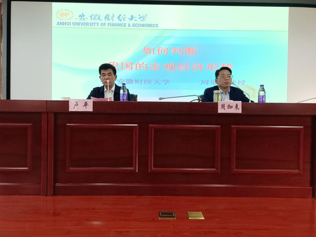2021年10月29日,經管學院為加強學科建設,提高教師和研究生的科研水平,特邀請著名經濟學家、安徽財經大學副校長周加來教授為師生做《如何判斷我國宏觀經濟形勢》的學術報告。合肥學院副校長盧平教授主持并全程參加報告會。