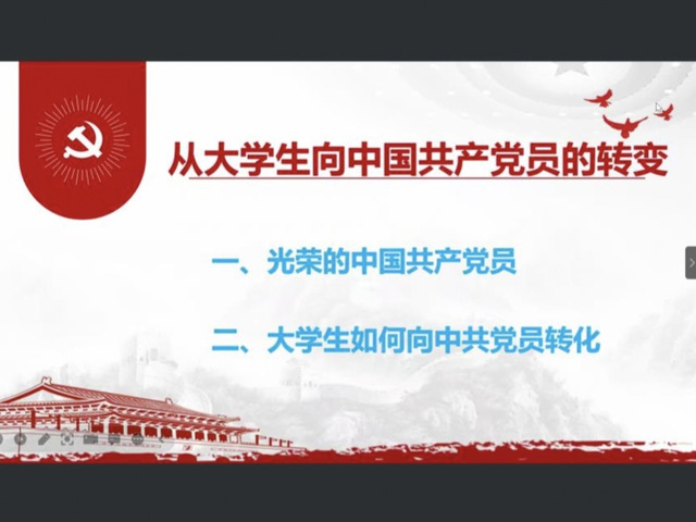 為進一步加強黨史教育,弘揚愛國主義精神,2022年12月2日中午,經濟與管理學院第七期入黨積極分子培訓班第四講《從大學生向中國共產黨員的轉變》在線上順利展開。本次培訓課程由校發規處處長宋海峰老師主講。