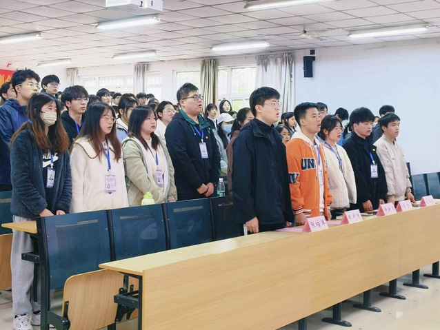 會議伊始,全體成員起立奏唱共青團團歌。隨后,我院第四屆團委學生會主席團成員朱光迪上臺發言,朱光迪同學向全體成員展開講述青年大學生如何成長為堪當民族復興大任的先鋒力量:學深、悟透、弄懂和做實。同時表示青年大學生應當加強理想信念;調整精神狀態;提高綜合素質。接著,我院第四屆團委學生會主席團成員李智上臺發言,李智同學以深刻領悟、準確把握、中國式現代化為重點表示:要高舉中國特色社會主義偉大旗幟,全面貫徹習近平新時代中國特色社會主義思想;要貫徹落實符合國情的中國式現代化的本質要求;要深刻領會推進中國式現代化建設的重大原則和戰略部署。李智同學也表示作為我院干部應當做有理想、敢擔當、能吃苦、肯奮斗的“四有”好青年。其次,我院第四屆團委學生會主席團成員桂鵬程上臺發言,桂鵬程同學以高校共青團改革和實踐為側重點帶領全體成員準確理解繼續深化高校學生會組織改革的邏輯。隨后桂鵬程同學詳細介紹改革與實踐的內容并表示我院學生會的職責就是建立起我黨和學生之間的溝通橋梁,學生會是由黨領導下共青團指導的高校團學組織體系的重要思想部分。桂鵬程同學也指出我院學生會成員要以習近平新時代中國特色社會主義思想為指導,以全心全意服務同學為宗旨。最后,我院第四屆團委學生會主席成員侍新月上臺發言,侍新月同學向全體成員說明了后期組織活動的安排,并表示希望我院學生干部在活動中規范自身的行為準則,建立良好的學習風氣。