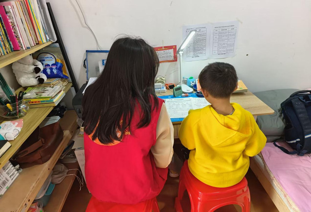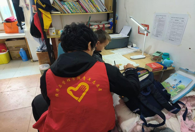 5月7日,經濟與管理學院志愿服務部赴海恒社區開展星火相承志愿家教活動,幫助小朋友們解決學習問題。
