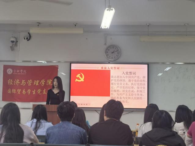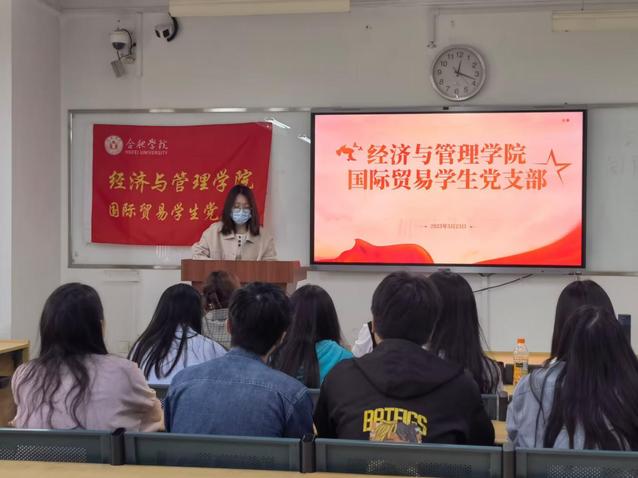 然后,國際貿易學生黨支部副書記劉思雨發言,“習近平總書記提出中國式現代化是人口規模巨大的現代化,是全體人民共同富裕的現代化,是物質文明和精神文明相協調的現代化,是人與自然和諧共生的現代化,是走和平發展道路的現代化。這些重要論述不僅闡明了中國式現代化的中國特色,也體現了堅持人民至上、堅持系統觀念、堅持胸懷天下等立場觀點方法。學習選讀,我們不僅要把握習近平新時代中國特色社會主義思想的主要內容,更重要的是掌握這一思想的世界觀和方法論,堅持好、運用好貫穿其中的立場觀點方法?!?/span>