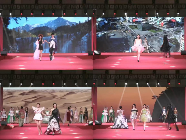 鮮紅的T臺配上絢麗的燈光,精心裝扮的模特身著富有設(shè)計感的服裝,邁著自信的步伐,向舞臺中央走去。我院以“演繹祖國的大好河山”為設(shè)計理念,將我國的神州大地,美麗山河通過服飾進行展示,海洋、山水、叢林等自然景色融入服裝的色彩與款式中;服飾采用綠色環(huán)保材料,充分展現(xiàn)“綠水豐漣漪,青山多錦繡”的主題。觀眾們掌聲連連,將比賽氣氛烘托到高點。比賽的結(jié)尾,評委老師做出了精彩的點評,表示本次比賽的呈現(xiàn)切合主題,設(shè)計師們的創(chuàng)作也新穎亮眼,同時也對同學們的未來生活表達了美好的祝愿。最后進行頒獎和合影留念。