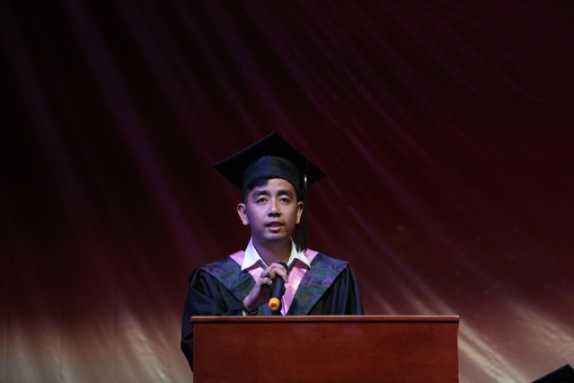 留學(xué)生畢業(yè)生代表黃明方同學(xué)發(fā)言回顧在合院的四年留學(xué)時光,表示中國和柬埔寨是鐵桿朋友和命運共同體,兩國人民永遠手拉手、心連心