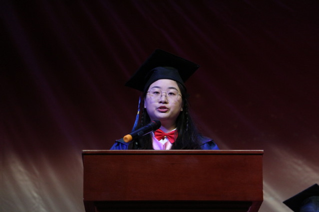 研究生畢業(yè)生代表張林婧同學(xué)發(fā)言表示一定會牢記領(lǐng)導(dǎo)、老師們對所有畢業(yè)生的厚望,帶著耕耘三年的收獲奔赴四方,帶著新時代青年的熱血激情服務(wù)社會、貢獻祖國
