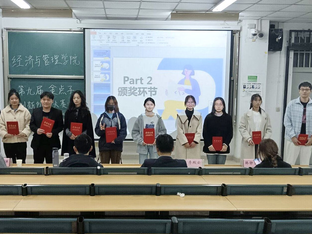 為培養(yǎng)我校學(xué)生的創(chuàng)新思維和創(chuàng)新能力,引導(dǎo)和幫助學(xué)生培養(yǎng)和樹立創(chuàng)新意識(shí)、鍛造創(chuàng)新精神,2023年11月10日晚上,經(jīng)濟(jì)與管理學(xué)院于一期校園四棟107教室舉辦第九屆“金點(diǎn)子”創(chuàng)新創(chuàng)意大賽。比賽由經(jīng)濟(jì)與管理學(xué)院副教授鄭飛鴻、李殿云老師、21金融學(xué)學(xué)生張培洋和韓靜宜擔(dān)任評(píng)委主持比賽。