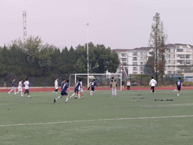 比賽開始前,球員們進行了充分的熱身運動。熱身結束后,伴隨著裁判的哨聲,比賽正式開始。球員們開始在操場上你追我趕,爭奪對手腳下的足球。我院隊員默契配合,進行了一個個完美的鏟球、傳球和一波波漂亮的防守,率先拿得一分。球員之間專業的手勢和話語的交流,使得他們之間配合更加緊密。場外的觀眾也發出陣陣掌聲和稱贊聲。很快上半場結束。