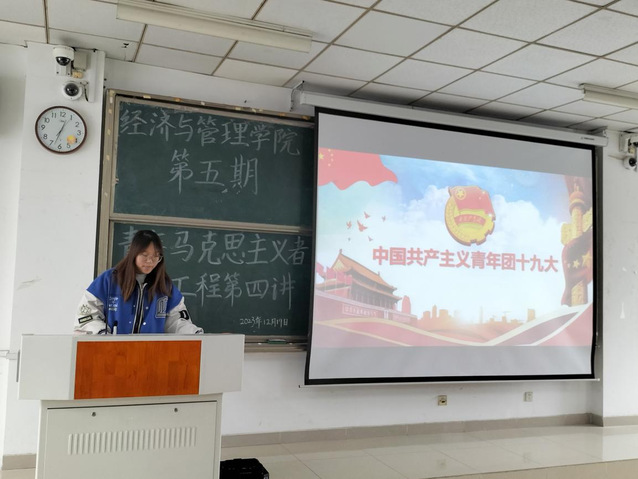 為深入學習宣傳貫徹團的十九大精神,2023年12月19日經濟與管理學院第五期青年馬克思主義者培養工程第四講于一期校園五棟101室成功舉行。此次課程由經濟與管理學院第五屆團委學生會主席繆思妍主講,第五屆團委學生會成員與23級新生班干參與學習。
