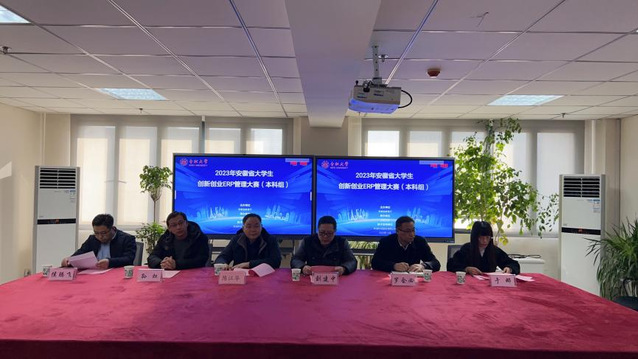 2023年12月22日,由安徽省教育廳主辦、合肥大學承辦、新道科技股份有限公司技術支持的“2023年安徽省大學生創新創業ERP管理大賽(本科組)”在我校舉行。本次大賽由36所本科院校的166支優秀代表隊、近千名師生參賽。