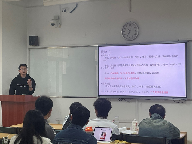 最后,于老師對到場參加考研及就業交流會的兩位學長表示感謝,并進行了總結,希望同學們認真學習相關經驗,積極準備。此外,更要樹立正確的就業擇業觀念,結合自身實際情況選擇適合自己的職業道路。于老師還提醒大家在校期間注意人身和宿舍安全,防范詐騙。