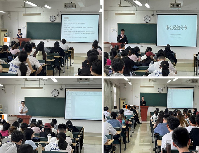 交流會中,丁雯雯介紹了會計專碩各科目的復(fù)習(xí)方法、備考計劃、院校選擇、作息時間安排等,并給出了針對性的參考建議。程國慶、李駿鵬分別為同學(xué)們講解了在備考公務(wù)員及事業(yè)單位期間應(yīng)該注意的問題,包括報考區(qū)域崗位選擇、筆試面試的題型和方法等,并提醒同學(xué)們積極參加校園招聘會,在備考的同時可先與意向單位簽約保底,緩解心理壓力。劉晨陽同學(xué)講述了自己報名西部計劃志愿者和面試的經(jīng)歷,并鼓勵大家去基層建功立業(yè),為人民服務(wù)。