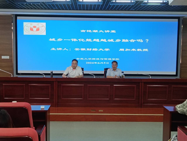 為進一步提升科研氛圍,增強師生科研能力,6月5日下午,經濟與管理學院在6棟一樓學術報告廳舉辦“南艷湖大講堂”。特邀安徽財經大學教授周加來作題為“城鄉(xiāng)一體化能超越城鄉(xiāng)融合嗎?”的學術報告。經濟與管理學院院長陳江華主持,我校師生100余人到場學習。