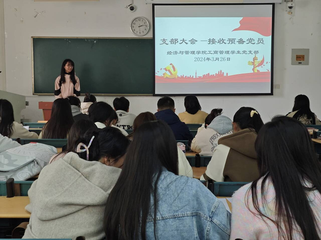 為響應黨中央號召,踐行黨的組織路線,深入推進黨員隊伍建設,2024年3月26日,經濟與管理學院工商管理學生黨支部在博學樓C座101室召開接收預備黨員支部大會,迎接方霞、許可兩位同志加支部大家庭。