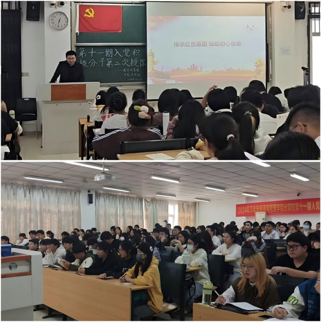 2024年11月12日中午,經濟與管理學院分黨校第十一期入黨積極分子培訓班第二課于一期4棟107教室進行。經濟與管理學院組織員、金融學學生黨支部書記陳維浩擔任主講人。經濟與管理學院第十一期入黨積極分子培訓班全體學員參加學習。 陳維浩詳細講述了中國共產黨在新民主主義革命時期、社會主義革命和建設時期以及改革開放和社會主義現代化建設新時期、中國特色社會主義新時代四個時期,團結帶領中國人民砥礪奮進的光輝歷程。陳維浩強調,各位入黨積極分子應始終堅持共產黨員的初心和使命,堅定自己的理想信念,樹立正確的價值觀念,要具備社會責任感和奉獻精神。 此次培訓,入黨積極分子不但深入了解了中國共產黨的光輝歷史,更加切實認識到應在學習生活中充分發揮先鋒模范作用,不僅要關心社會,服務人民,更要擔強國重任,做有為青年。 (經濟與管理學院 撰稿人:朱蕾 初審:王晨森 復審:余宏強 終審:倪澤強 ) |