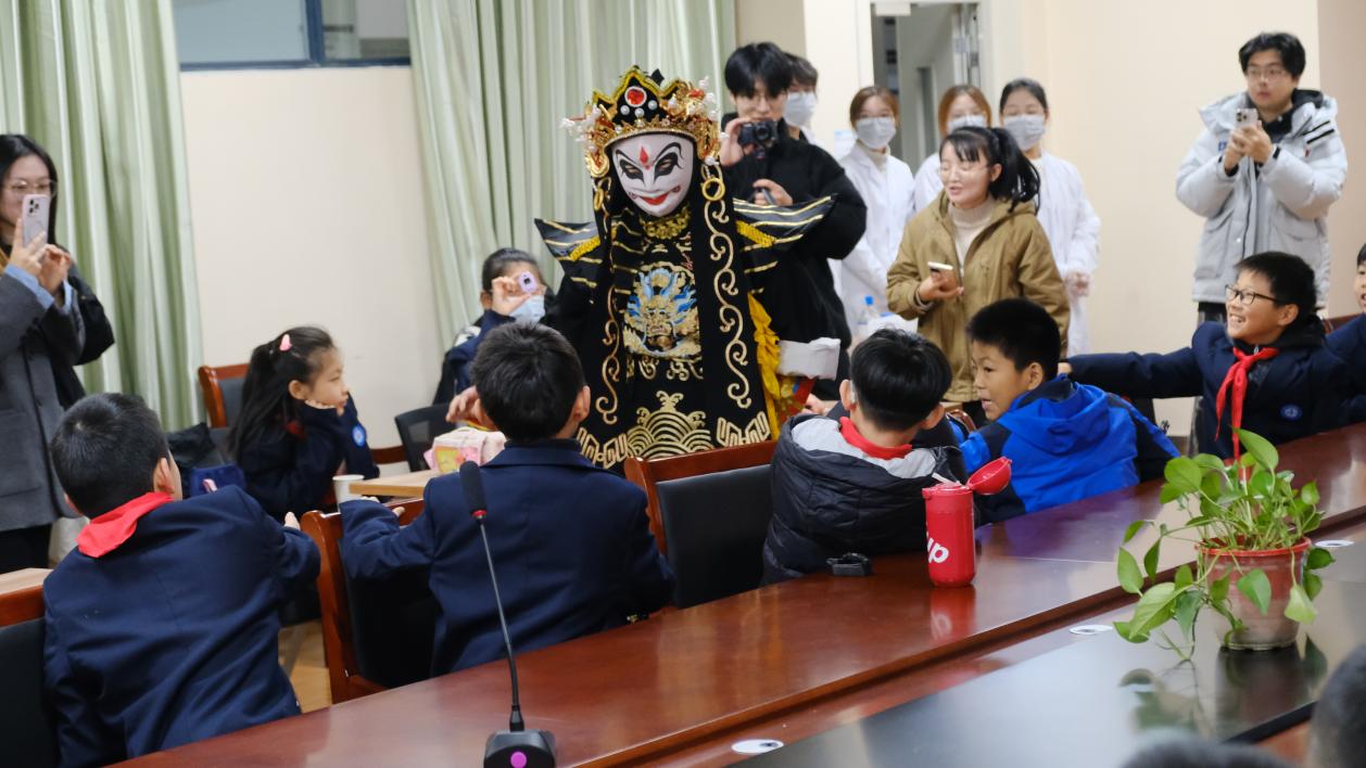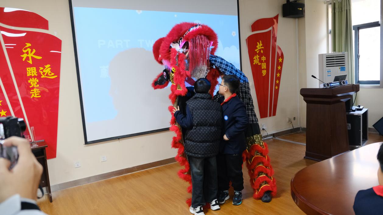 緊接著校龍獅工作室的孫晨和徐阿暢兩位同學為在場師生呈現了一場震撼人心的非遺文化展演。通過精彩的舞獅表演和富有戲劇性的變臉技藝,孩子們身臨其境地感受到了中國傳統民俗藝術的獨特魅力。舞龍舞獅,作為中華民族歷史悠久的非物質文化遺產,其背后蘊含的不僅是技藝的傳承,更是民族精神的象征,精彩表演讓孩子們領略了傳統藝術的精髓,深化了他們對中國非遺文化深厚底蘊的認知與尊重,為活動奠定了濃厚的文化氛圍。
