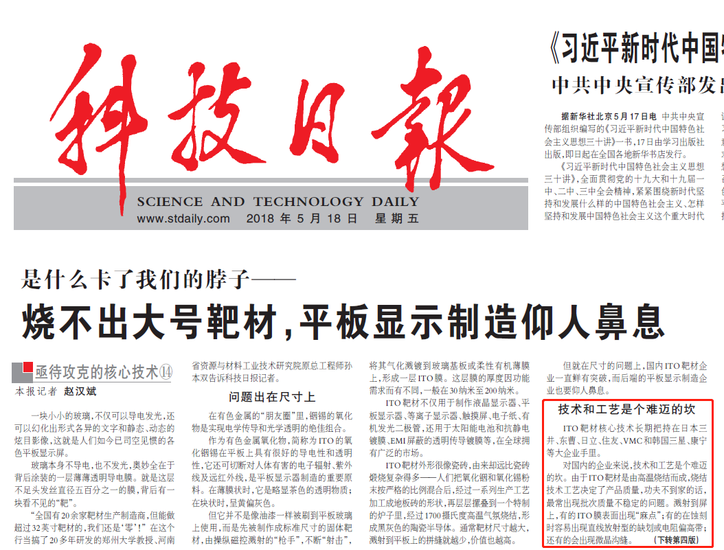 包含京東方、華星光電、維信諾、富士康、中電熊貓、惠科等企業在內,我國已在平板顯示行業累計投入超過1.3萬億元,年消耗中高端ITO靶材2000噸以上,完全依賴于韓國、日本進口。未來三年內,隨著京東方、華星光電、維信諾、富士康、惠科等企業高世代線及AMOLED的投產,國內高端ITO靶材年需求量將增加40%以上,包括富士康旗下群創光電和美國威斯康辛州6代線在內,中高端ITO靶材年需求量將達到3000噸以上,市場規模約100億元。