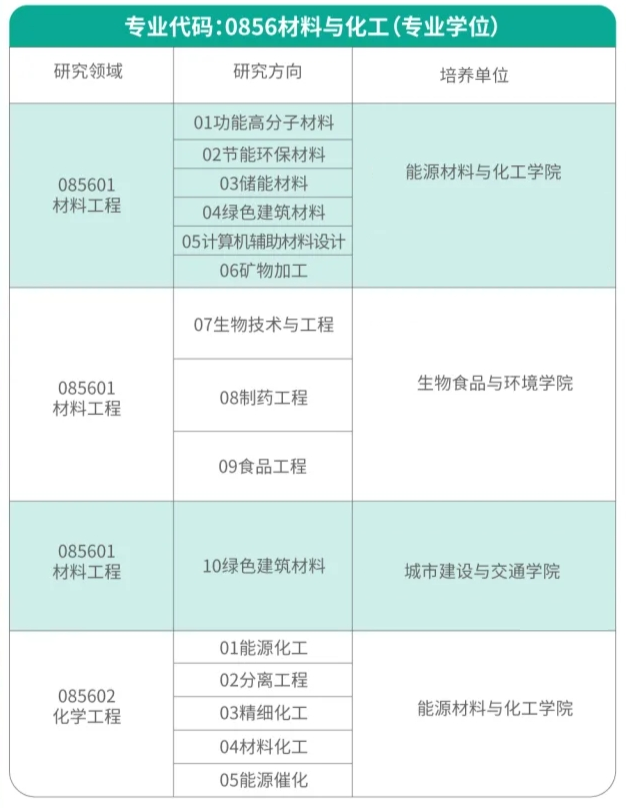 “材料與化工”專業學位碩士點招生代碼及開設的研究方向