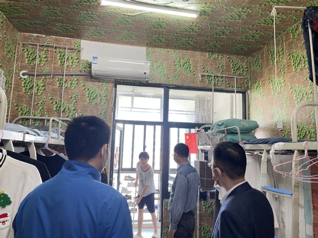 在走訪過程中,學院領導仔細了解學生封校管理期間的身心狀況,希望學生們要理解支持、積極配合、落實好學校疫情防控相關舉措,遵守疫情防控規定和校規校紀,尤其是保持良好的生活習慣、加強鍛煉提高免疫力、保持安全社交距離、戴口罩以及宿舍勤通風、勤打掃,以實際行動堅決守護校園平安。