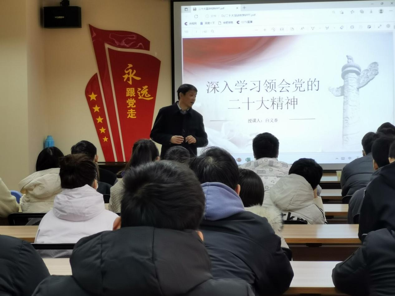 黨的二十大召開以來,學院黨委堅持把學習宣傳貫徹黨的二十大精神作為當前和今后一個時期的主要政治任務。為積極響應黨中央與學校黨委關于學習貫徹落實黨的二十大精神相關部署,121日,于生化樓三樓學術交流中心,組織部部長白義香以“深入學習領會黨的二十大精神”為主題,給材化學院第三黨支部學生黨員和全院新發(fā)展黨員上了一堂生動的黨課,院黨委書記劉沛平、副書記魏安樂和全體輔導員參加學習。