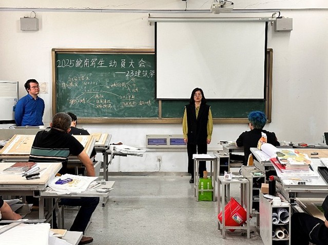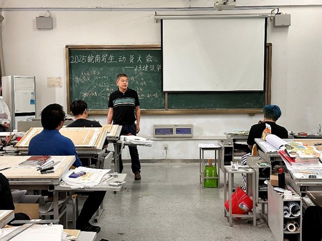 2025年5月9日,城市建設與交通學院建筑系在41棟604教室召開了23級建筑學專業皖南色彩實習動員會。會議由建筑系司大雄老師主持,城建學院黨委書記張永軍、黨委副書記高喬楠以及色彩實習指導老師一同參加,并與同學們進行了面對面的交流。