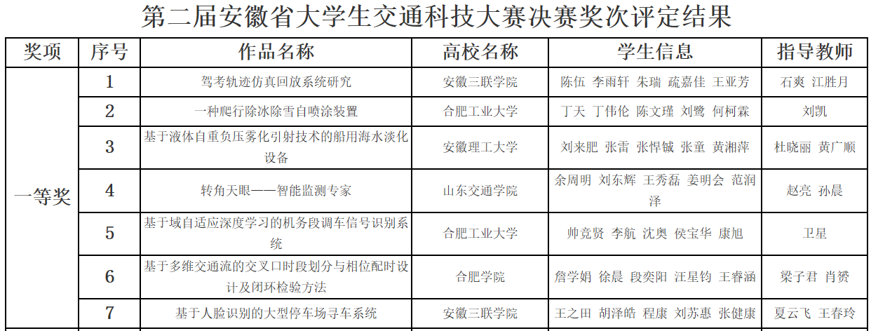 12月5日-6日,由安徽省教育廳主辦的第二屆安徽省大學生交通科技大賽(B類)在安徽三聯學院圓滿落下帷幕,我院交通工程系教師梁子君、肖赟博士帶隊的10名交通工程專業本科生在不影響正常學習的前提下積極備賽,老師和同學們從賽前動員、作品準備以及決賽答辯環節均付出辛勤勞動和創新智慧,最終完成的作品分別榮獲本屆大賽的一等獎和三等獎(合計申報發明專利4項),繼第一屆安徽省交通科技大賽我院所獲得的第二、三等獎,今年又取得了新的突破。