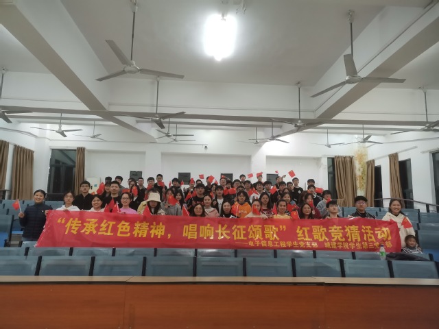 為慶祝紅軍長征勝利85周年,緬懷革命先烈的光輝歷史,領悟長征精神,11月18日18點30分,城市建設與交通學院學生第三黨支部與先進制造工程學院電子信息工程學生黨支部在38棟2jt聯合舉行“傳承紅色精神,唱響長征頌歌”紅歌競猜主題黨日活動。參加本次活動的有劉艷雙老師、朱江老師、先進制造工程學院電子信息工程學生黨支部成員、城市建設與交通學院學生第三黨支部成員以及支部入黨積極分子。