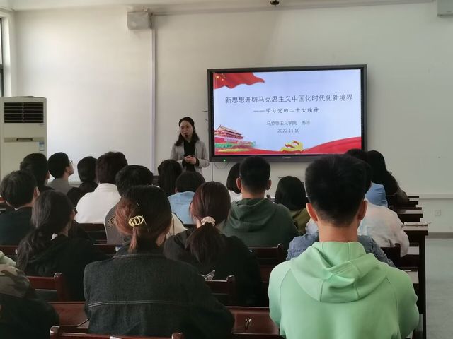 馬克思主義學(xué)院副院長(主持工作)蘇冰教授以題為“新思想開辟馬克思主義中國化時代化新境界——學(xué)習(xí)黨的二十大精神”的報告為新的入黨積極分子為學(xué)員概括講解了二十大報告的前言主體部分和結(jié)語及二十大報告的邏輯結(jié)構(gòu)。重點為學(xué)員解讀了20大報告中的第二部分“開辟馬克思主義中國化時代化新境界”,講述了十八大以來,我們黨勇于進(jìn)行理論探索和創(chuàng)新,取得重大理論創(chuàng)新成果,開辟了馬克思主義中國化時代化新境界。在此次黨課中,學(xué)員們受益匪淺,作為新時代的大學(xué)生,要進(jìn)一步牢記歷史,努力學(xué)習(xí)。去團(tuán)結(jié),去拼搏,去創(chuàng)造,共同擔(dān)起新時代的重任!(城市建設(shè)與交通學(xué)院 撰稿人:韓冰審稿人:李書群)