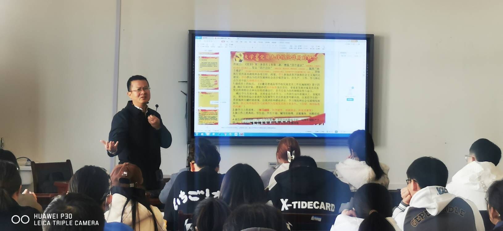 報告題為《大學(xué)生黨員如何充分發(fā)揮先鋒模范作用》,丁增云從大學(xué)生入黨程序、動機、內(nèi)涵、存在的問題以及如何發(fā)揮黨員作用等多個方面向?qū)W員們介紹了大學(xué)生黨員如何發(fā)揮先鋒模范作用。