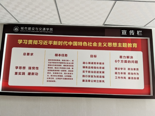 為了加強宣傳主題教育,城建學院黨委及時更新宣傳欄,各黨支部在本周也積極開展了學習貫徹習近平新時代中國特色社會主義思想主題教育。(城市建設與交通學院 撰稿人:王艷麗 審稿人:張永軍)