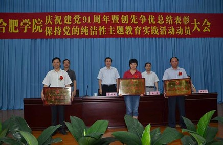大會(huì)在《中華人民共和國(guó)國(guó)歌》聲中隆重開幕。大會(huì)宣讀了《中共合肥市委關(guān)于表彰全市創(chuàng)先爭(zhēng)優(yōu)先進(jìn)基層黨組織、優(yōu)秀共產(chǎn)黨員和創(chuàng)先爭(zhēng)優(yōu)活動(dòng)先進(jìn)縣(市)區(qū)黨委的決定》,我院電子信息與電氣工程系黨總支獲得合肥市創(chuàng)先爭(zhēng)優(yōu)先進(jìn)基層黨組織稱號(hào),我院數(shù)學(xué)與物理系教師、系黨總支委員王貴霞獲得優(yōu)秀共產(chǎn)黨員稱號(hào)。大會(huì)表彰了院先進(jìn)黨總支3個(gè),院先進(jìn)支部20個(gè),院優(yōu)秀共產(chǎn)黨員80人。先進(jìn)黨總支代表電子系黨總支黃曉云書記、先進(jìn)黨支部代表計(jì)科系教工第三黨支部許強(qiáng)老師、優(yōu)秀教師黨員代表化工系吳纓教授、優(yōu)秀學(xué)生黨員代表外語系許澤澤同學(xué)分別發(fā)言。面對(duì)榮譽(yù),既感到光榮,更感到一份責(zé)任,代表們一致表示將進(jìn)一步堅(jiān)定理想信念,自覺加強(qiáng)黨性修養(yǎng),勇于擔(dān)當(dāng),在基層組織的建設(shè)中無私奉獻(xiàn),更好地發(fā)揮黨員先鋒模范作用,為黨旗再添光彩,為學(xué)校再立新功,以創(chuàng)先爭(zhēng)優(yōu)的新成績(jī)迎接黨的十八大勝利召開。