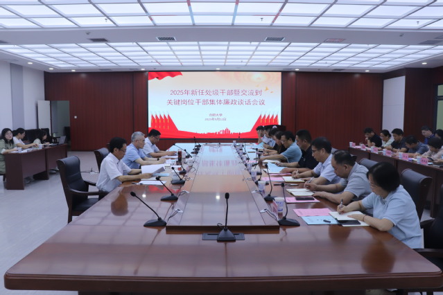 9月12日,我校召開2025年新任處級干部暨交流到關(guān)鍵崗位干部集體廉政談話會議。校黨委書記鄔平川,黨委副書記周飛,黨委委員、紀委書記、省監(jiān)委駐合肥大學(xué)監(jiān)察專員吳功福出席會議,會議由周飛主持。學(xué)校新任處級干部及交流到關(guān)鍵崗位干部、紀委辦負責(zé)人和組織部負責(zé)人參加會議。