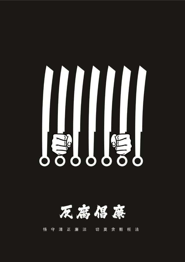 作品圍繞“反腐廉潔”進行創作,運用了三位手工藝人的形象對貪污腐敗的人進行反諷;將腐敗不正之風的人不會有的生活方式直接寫了出來,同時使用扁平畫的風格將生活中最樸素人物的真實的狀態表現出來,字體偏手寫風格,充滿親和力,“廉潔”兩字使用紅色更加突出。