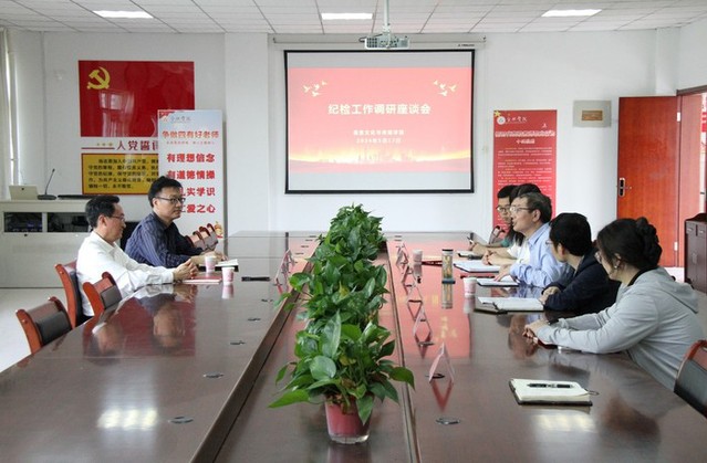 在調研座談會上,語言文化與傳媒學院黨委書記儲昭輝全面介紹了學院黨的建設工作,特別是全面從嚴治黨、巡察整改工作及黨紀學習教育開展情況。院長丁增武從專業建設、教學科研、研究生培養、留學生培養等方面介紹了學院發展情況。黨委副書記、紀委書記張愛萍就二級紀委履職盡責情況、存在問題及下一步工作打算進行了匯報。