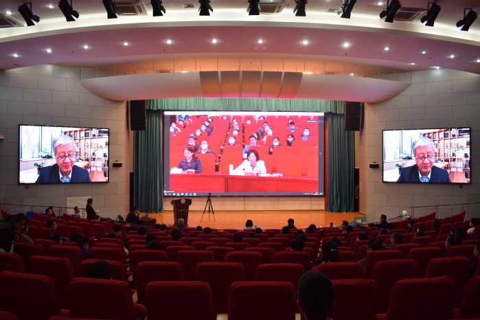 校長吳春梅、副校長陳秀及各學院骨干教師共150余人聆聽了報告,吳春梅主持報告會。會議以智能交互遠程視頻的形式進行,這是我校首次采用現代信息化手段召開的交互式線上報告會。