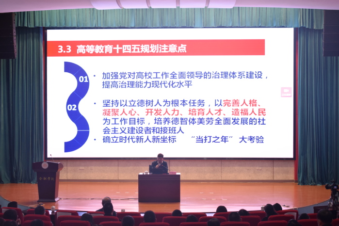 此次報告既總攬全局又深入淺出,既有分析研究又有方法對策,高屋建瓴,具有很強的針對性、指導性和實踐性,讓我校師生對高等教育發展內涵和面臨形勢有了全新的理解和認識,對我校科學謀劃“十四五”、深入推進應用型高水平大學建設具有重要的指導意義。