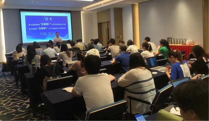 本次大賽自啟動以來,吸引了全校近2000名同學共310支項目團隊參加。備戰省賽正值暑期,我校師生克服困難,精心組織,開展路演答辯輔導和重點項目打磨等培訓活動10余場,邀請校內外專家30余人次為入圍省賽項目進行深入培訓和指導,優化項目內容,打磨項目細節,為競賽取得好成績奠定了基礎。