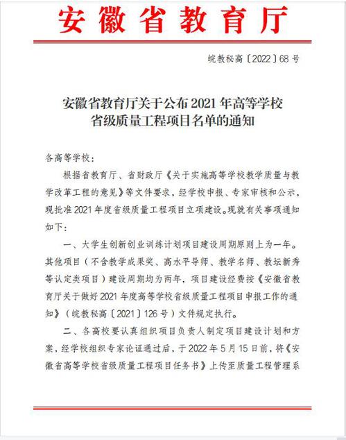 近日,安徽省教育廳公布了2021年度高等學校省級質量工程項目立項名單,我校8項教學成果喜獲省級教學成果獎,其中《“專業、就業、產業”三業一體,打造雙元制高等教育人才培養“合肥模式”》、《通專融合、理實融合、文理融合,人才個性化培養——模塊池課程體系的探索實踐》和《聚焦“四創融合”,推動“三體系”育人,創新創業全生態教育體系構建與實踐》3項成果榮獲省級教學成果獎特等獎,在全省高校中名列前茅。