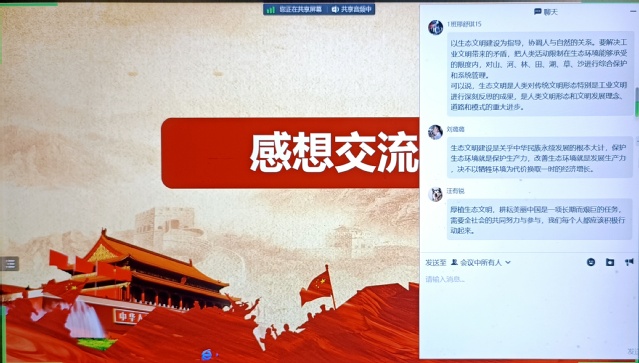 為貫徹學習習近平生態文明思想,落實安徽省第十一次黨代會關于生態文明建設的戰略部署,為綠色發展、美麗中國建設貢獻青年力量,小教黨支部于3月22日晚開展了以“保護好山好水 厚植生態優勢”為主題的黨日活動。考慮到大部分大四黨員仍未返校,此次活動通過騰訊會議的形式在線上開展。 活動開始時,支部書記王多慈帶領支部黨員共同學習了習近平生態文明思想,以及安徽省第十一次代表大會會議精神。王老師指出,青年黨員應肩負起全面推進美麗中國建設、加快推進人與自然和諧共生的現代化的時代責任。接著,支部黨員在群聊中積極發表感想,通過相互交流學習到了如何更好地將生態文明建設付諸實踐,堅定自身推動生態文明建設的使命感和責任感。在活動的最后,支部黨員周天藝帶領大家進行了“生態知識我知道”的搶答小游戲,大家都踴躍參與其中,并表示這樣的趣味小游戲讓自己對于如何更好為生態文明建設貢獻青年力量有了進一步的幫助。 通過此次主題黨日活動,小教黨支部進一步認識到了生態文明建設的重要性和緊迫性。支部將認真學習宣傳貫徹安徽省第十一次黨代會精神,緊緊圍繞“學思想、強黨性、重實踐、建新功”總要求,持續加強思想政治建設。(撰稿:周天藝 審稿:王多慈) |