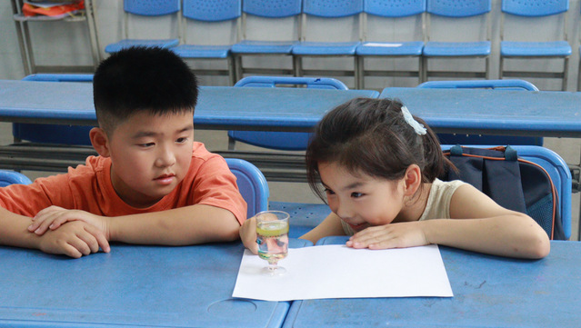 為學(xué)習(xí)貫徹落實黨的二十大精神,進一步提高學(xué)生的科學(xué)素養(yǎng),鼓勵學(xué)生從小樹立“愛科學(xué)、用科學(xué)”的思想意識。7月8日下午,合肥大學(xué)教育學(xué)院“同筑鄉(xiāng)村夢,共‘育’振興果”志愿服務(wù)隊于合肥市小廟鎮(zhèn)蜀山行知學(xué)校開展了暑期“三下鄉(xiāng)”社會實踐活動。本次課程以“童心探科學(xué),逐夢創(chuàng)未來”為主題,由教師徐錦瑤和王子超開展妙趣橫生的科學(xué)小實驗“神奇的彩虹雨”和“火山爆發(fā)”,帶領(lǐng)同學(xué)們學(xué)習(xí)“密度”的概念,共同感受科學(xué)的魅力。 課程伊始,教師攜帶滴管、量杯、塑料杯、食用色素等材料進入教室,同學(xué)們紛紛投來好奇的目光。“同學(xué)們,物體的沉浮是否與物體的重量有關(guān)呢?”教師提出問題引發(fā)同學(xué)們對實驗現(xiàn)象的思考,通過實驗示范、概念解讀、生活應(yīng)用等方式讓同學(xué)們對“密度”這一概念初步形成理解,為實驗的順利完成打下理論基礎(chǔ)。 在“神奇彩虹雨”實驗中,同學(xué)們根據(jù)教師的教學(xué)步驟,擺量杯、滴色素、觀現(xiàn)象。由于液體的密度不同,油中含有的色素發(fā)生沉淀,形成了一道道絢麗的“彩虹”景象。“哇!太神奇啦!真美!”同學(xué)們的贊嘆和歡呼不時傳來。在“火山爆發(fā)”實驗中,教師將泡騰片放入油水混合液中,杯中發(fā)生了奇妙的化學(xué)反應(yīng),同學(xué)們瞬間被“液體翻滾、氣泡升騰”的神奇景象吸引,雖然在實驗過程中同學(xué)們遇到困難,但在教師的鼓勵下,他們開動腦筋,運用密度的知識,不斷嘗試找到解決方法,成功得出實驗原理。 好奇心是探究世界的源動力。本次科學(xué)課堂,教師運用科學(xué)實驗讓深奧的科學(xué)知識變得通俗易懂,激發(fā)了同學(xué)們探索科學(xué)奧秘的興趣,培養(yǎng)了科學(xué)探究的能力,在同學(xué)們心中播下科學(xué)的種子。在教師的指導(dǎo)下,同學(xué)們感受到科學(xué)的魅力,用實驗的方式探索未知領(lǐng)域,體現(xiàn)了嚴謹?shù)倪壿嬎季S和求實的科學(xué)態(tài)度。科學(xué)教育在現(xiàn)代社會中扮演著至關(guān)重要的角色,幫助青少年更好地應(yīng)對各種挑戰(zhàn)和困難,為他們更加關(guān)注科學(xué)、熱愛科學(xué)奠定了堅實的基礎(chǔ)。(教育學(xué)院撰稿:徐錦瑤、高宇彤 初審:張弦樂 復(fù)審:王迅 終審:劉良宏) |