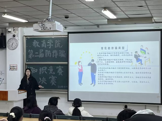3月25日,教育學院在一期3棟101教室開展了第二屆防詐騙知識競賽決賽。比賽邀請教育學院團委學生會主席擔任評委,比賽形式為反詐主題ppt匯報,評分標準以現場展示以及ppt內容為主。隨著主持人開場詞的結束,決賽競賽正式開始。 本次共有七支隊伍進入決賽。各參賽隊緊扣防詐主題,普及防詐知識,幫助大學生在遇到詐騙事件時保持沉著冷靜,教會大家學會更好地維護自己的合法權利。此外,參賽選手們還結合身邊典型案例提醒大家認識和警惕新型詐騙手段。 七支隊伍匯報完畢后,評委對比賽內容進行了點評,肯定了各參賽隊對防詐主題的充分把握,能夠運用實例進行講解,同時引出大學生在遭遇詐騙時的正確做法,具有深刻的警示意義。最終,“沒人能詐我”隊榮獲決賽一等獎。 此次反詐知識競賽的成功舉辦,進一步營造了教育學院積極參與反詐宣傳的濃厚氛圍。今后,教育學院將繼續加強反詐宣傳教育工作,不斷提升師生們的反詐意識和自我保護能力,為構建平安、和諧、穩定的校園環境貢獻力量。(撰稿:汪藍天、趙文豪 審核:張弦樂) |