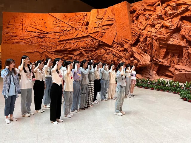 為進一步推動學習貫徹習近平新時代中國特色社會主義思想主題教育走實走深,6月28日,教育學院黨委組織部分學生黨員前往渡江戰(zhàn)役紀念館開展黨性教育實踐活動,瞻仰革命先烈,緬懷英雄事跡,錘煉堅強黨性。 學生黨員們首先來到渡江戰(zhàn)役紀念館廣場,滿懷崇敬之情瞻仰渡江戰(zhàn)役總前委群像,深切緬懷革命先輩的豐功偉績。步入紀念館,大家依次參觀“戰(zhàn)前形勢”“戰(zhàn)役準備”“突破江防”“戰(zhàn)役勝利”“人民支前”“英烈業(yè)績”等展廳,認真聽取講解,重溫崢嶸歲月,汲取奮進力量。 在一樓大廳,面向鮮紅的中國共產(chǎn)黨黨旗,學生黨員們高舉右拳,鄭重宣誓,鏗鏘有力的誓言表達了大家矢志不渝、接續(xù)奮斗的堅定信念和擔當作為、奮勇前進的堅定信心。院黨委副書記王迅表示,希望大家堅定理想信念,牢記全心全意為人民服務(wù)初心,在學風建設(shè)、文體活動、社會實踐中發(fā)揮好黨員的先鋒模范作用。 歷史是最好的教科書。自主題教育開展以來,教育學院黨委大力強化學生黨支部建設(shè)和學生黨員教育管理,引導青年學生黨員深入了解黨的光輝歷史、體認黨的精神譜系、傳承紅色基因,激勵大家將主題教育的思想成果轉(zhuǎn)化成強黨性、建新功的自覺行動,做新時代的追夢人。(撰稿:蔣文靜 孫卓月 審核:王迅) |
