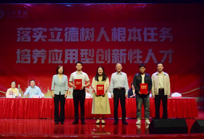 校領導為“合肥學院優秀畢業研究生代表”和“合肥學院優秀學生干部代表”頒發榮譽證書,表彰他們在學術研究、專業實踐等方面的突出表現。