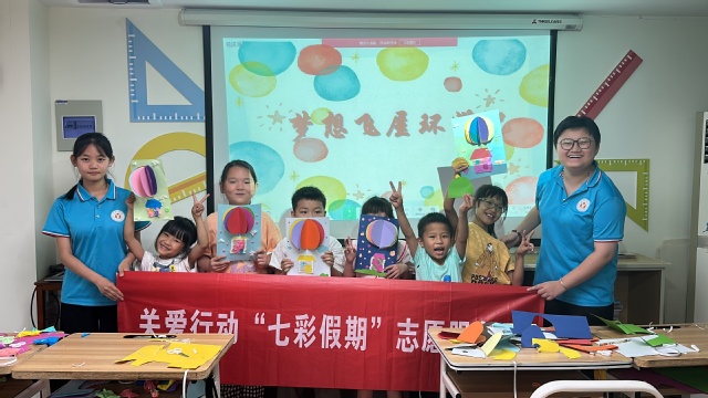 為豐富兒童的業(yè)余文化生活, 7月8日,合肥學(xué)院教育學(xué)院“七彩童年,‘育’你相伴”三下鄉(xiāng)團隊來到濱湖和園社區(qū)開展社會實踐活動,志愿者高凡和王欣悅為孩子們帶來“做夢想之屋 起未來之航”——氣球小木屋這一課程。支教活動已經(jīng)進行到第二周,隊員們教學(xué)熱情不減,繼續(xù)為這里的孩子們準(zhǔn)備生動有趣的課程,力圖讓孩子們的假期因隊員們的到來而更加豐富多彩。 夢想飛屋DIY活動妙趣開啟,高凡老師帶領(lǐng)孩子們進入《飛屋環(huán)游記》的夢幻世界,乘著小屋飛向心中的“烏托邦”!在《飛屋環(huán)游記》中,那形色各異的氣球,會飛的彩色房子,給孩子們做了一個翱翔天際的美夢,放飛了一代又一代孩子的天真想象力。高凡老師這堂課的內(nèi)容便是教孩子們手工制作這棟飛向夢想的房子。 飛屋是同學(xué)們用雙手制作出來,夢想也將由他們的雙手創(chuàng)造。教學(xué)開始,高凡老師在黑板上寫下本節(jié)課主題。在同學(xué)們翹首以盼的目光下,老師開始了本堂手工制作課的步驟講解。課堂之中,孩子們趴在滿是卡紙、彩泥等制作材料的桌子前,迫不及待地創(chuàng)作專屬自己的作品。同學(xué)們用自己天馬行空的想象力,呈現(xiàn)出一個個五彩斑斕的小房子。他們從這些卡紙中,精心挑選出一張來當(dāng)作底板,后剪下雙面膠豎貼于棉簽兩端。高凡老師在講臺上一步步示范操作的步驟,同學(xué)們拿著折紙跟著教師一步步完成,同學(xué)們都聽的十分認真。在這個過程中,助教會巡視整個教室,遇到有不懂的同學(xué),助教會立即上前幫助,盡力確保每一位同學(xué)都參與進課堂、跟上教學(xué)進度。與此同時,老師鼓勵同學(xué)們用彩色卡紙,自主剪出梯形、小正方形和長方型的圖案做成小裝飾品,發(fā)揮自己的創(chuàng)意,創(chuàng)造獨屬于自己的夢想飛屋。 氣球是飛屋飛翔的動力,它載著小屋與孩子的夢想一起飛向遠方。同學(xué)們拿起五彩的卡紙拼貼在一起,一個個五彩繽紛的氣球呈現(xiàn)在眼前。整個過程中,同學(xué)們都躍躍欲試,迫不及待地想完成屬于自己的“飛屋”。時間一點點流逝,同學(xué)們陸陸續(xù)續(xù)折出了一個又一個氣球。最后,所有的同學(xué)們都成功完成了氣球的制作。在最關(guān)鍵的環(huán)節(jié),氣球與房屋的合體中,同學(xué)們神情中都帶著專注,將剛才做好的氣球仔仔細細地用白線連接下方的小屋,如同連接自己與夢想一般認真。 課堂結(jié)束后,大家拿著精心制作的“夢想小屋”合影留念,老師告訴同學(xué)們:“夢想是一個很美好的東西,是我們內(nèi)心的渴求,是我們奮勇向前的動力,有夢想的人才有志向,有志向的人,才可能享有成功。”學(xué)生積極熱情地回應(yīng)老師,表達自己會一直堅守自己內(nèi)心夢想的決心。本堂課在他們心中播下夢想的種子,讓同學(xué)們的未來為夢想而努力,為夢想而奮斗,為夢想而堅持。(撰稿人:李文倩,審核人:張弦樂) |