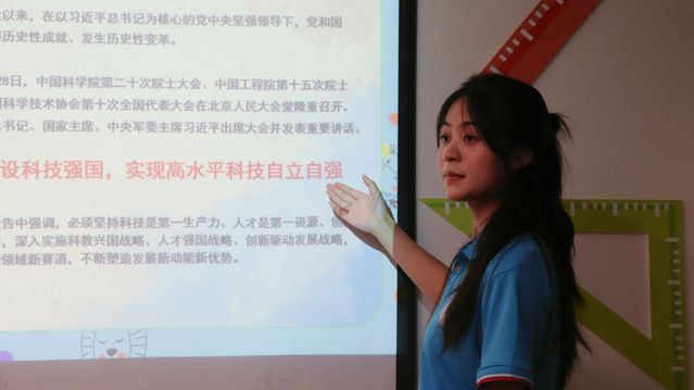 7月8日下午,合肥學(xué)院教育學(xué)院“七彩童年,‘育’你相伴”三下鄉(xiāng)社會實踐團隊于合肥濱湖和園社區(qū)開展了一節(jié)課程。本次課程由志愿者彭啟月?lián)沃髦v教師,志愿者侯鑫宇擔(dān)任助教,主要內(nèi)容是讓孩子們感受中國科技的神奇。 少年強則國強,少年擁有探索新知的欲望,有無法想象的潛能,更有青春洋溢的活力。國強來自創(chuàng)新,創(chuàng)新來自少年。彭啟月老師希望通過講解中國科技的日新月異,觸摸其背后的艱辛,樹立民族自信,志向高遠(yuǎn),助力時代新征程。 課程開始,“奮斗者號深潛萬米,達到世界之最,在深海留下中國印記;‘嫦娥五號’飛上太空,奔逸絕塵……”老師向孩子們娓娓道來著一個個激動時刻,一座座科技高峰,一個個創(chuàng)新前沿,為孩子們描繪了中國科技繼往開來、上天入海的畫面,孩子們無不驚嘆于中國科技的無窮魅力與神奇。緊接著,老師又帶領(lǐng)孩子們欣賞視頻《坐標(biāo)中國》,視頻中問鼎蒼穹、跨山越海的中國跨度,精益求精的中國精度,屢創(chuàng)奇跡的中國高度,九天攬月、五洋捉鱉的中國深度,逢山開路、遇水架橋的中國力度,挑戰(zhàn)極限的中國速度……一樁樁、一件件由中國人民創(chuàng)造的奇跡讓孩子們感受到祖國的強大,也提高了孩子的民族自豪感。在老師詢問對短片中的哪個片段印象最深刻時,令老師感到意外的是,有孩子站起來回答道:“C919!我坐過C919!”其他孩子也紛紛發(fā)表自己的感言,“我也想要學(xué)開大飛機!”“我長大后也想要當(dāng)一名科學(xué)家!”伴隨著孩子們的純稚的童言童語,在追逐夢想的新起點上,中國科技將飛得更深、更遠(yuǎn)。 科學(xué)賦能成長,創(chuàng)新驅(qū)動未來。科普教育不僅讓孩子們感受到科技的魅力,還讓孩子們感懷于科學(xué)家“心有大我,至誠報國”的奉獻精神。科技之光照耀未來,科普之光照亮全民。望孩子們在未來的日常生活中堅定理想信念,放飛理想,演繹精彩人生!(撰稿人:張楊,審稿人:張弦樂) |