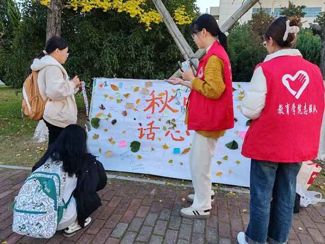 為了增強同學們的心理健康意識,幫助大家更好地應對生活中的困難和挑戰,11月20日至21日,教育學院陽光心理志愿服務隊在一期東門處舉辦了“落葉寄心語”活動。 本次活動的主題是“落葉心語”,旨在通過一系列豐富多彩的活動,讓大家了解自己的內心世界,增強心理素質,提高生活質量。在這次的活動中,首先志愿者們組織參加活動的同學在校園內收集各種形狀、顏色的樹葉,并和他們一起把樹葉粘貼在展板上,讓他們感受大自然的美妙與變化。接下來志愿者們積極邀請同學制作心情卡片,將自己的心情、感受和期望以文字或繪畫的形式表達出來,以便更好的了解自己的內心世界。最后,志愿者們向同學們介紹一些心理健康知識,幫助大家認識自己的情緒和心理狀態,提高心理素質。 培養健康心理,感受生命意義。在這次的活動中,不僅可以讓同學們感受校園的美好風光,走近和熱愛大自然也讓他們能夠在活動中釋放壓力,提高心理素質,在生活和學習中能夠做一個快樂的積極向上的人。(撰稿:宋佳琪 張雪云,審稿:張弦樂) |