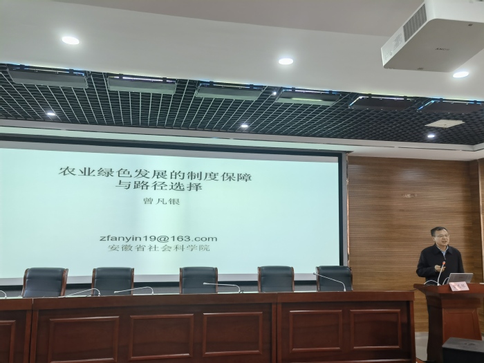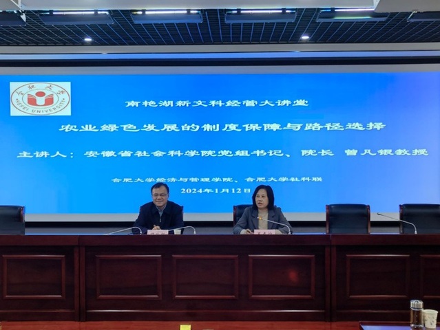 1月12號下午,經濟與管理學院、校社科聯(lián)在6號樓學術報告廳共同主辦2024年第一期“南艷湖新文科經管大講堂”。特邀安徽省社會科學院黨組書記、院長曾凡銀教授作題為“農業(yè)綠色發(fā)展的制度保障與路徑選擇”的學術報告。校長吳春梅教授出席并主持,我校師生100余人到場聆聽學習。
