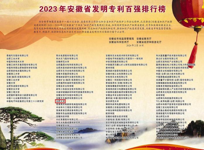 我校在2023年安徽省發(fā)明專(zhuān)利百?gòu)?qiáng)榜中再上新位次